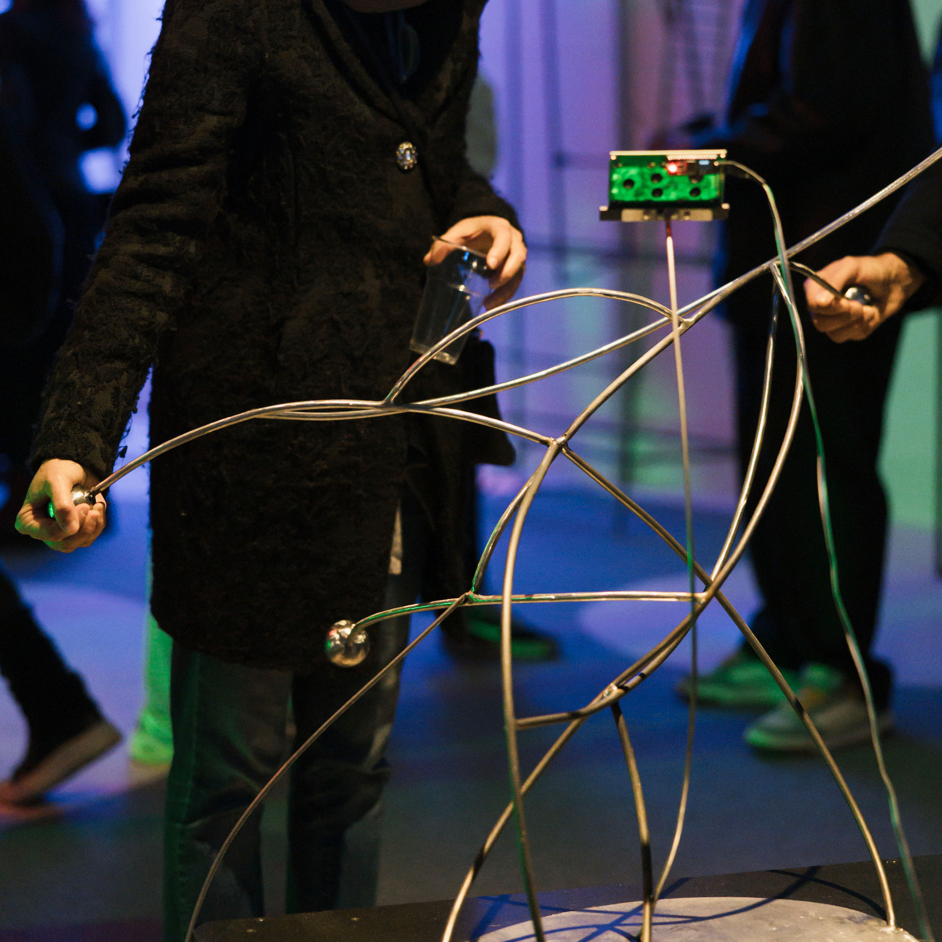 As people interact with the piece, this sensitive material harnesses their energy, transforming it into movement and sound.